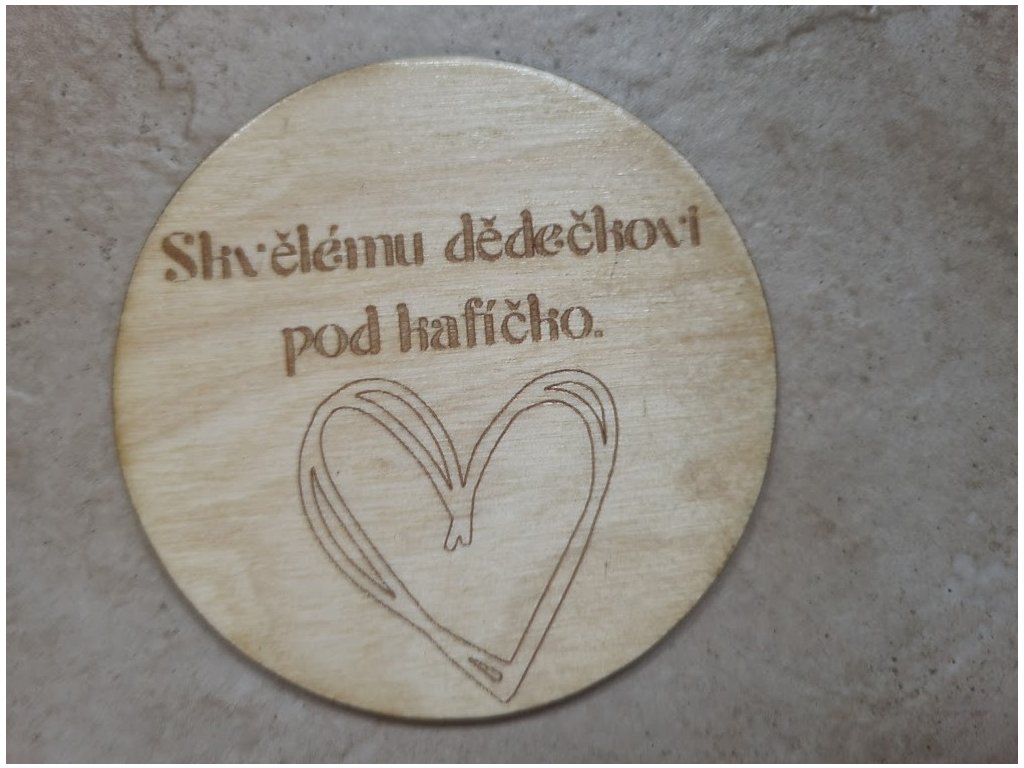 Podtácek o velikosti 9,5x9,5 cm. Podtácky jsou lakované a tím chraněné při polití.